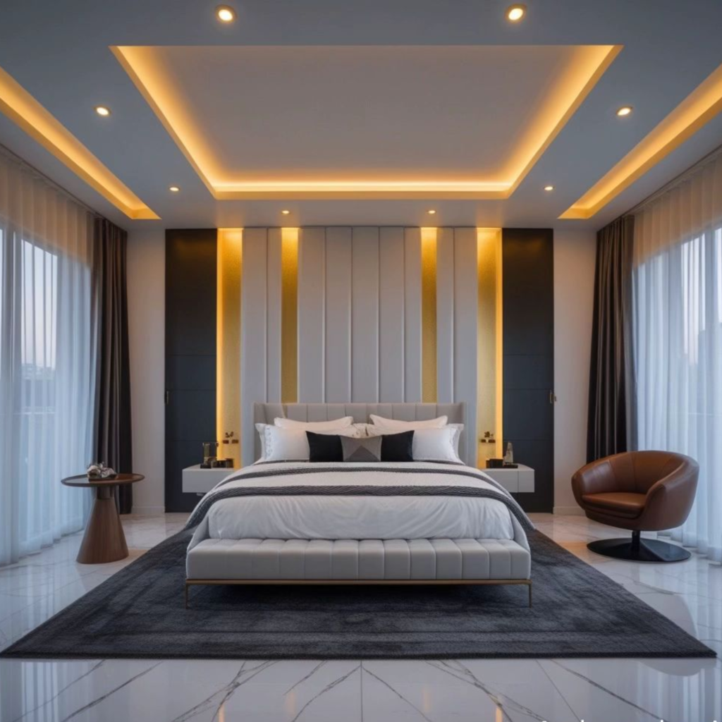 Transform your ceilings with modern gypsum, POP, or decorative false ceilings that enhance your interior’s style. Furthermore, our designs improve lighting, acoustics, and overall aesthetics, creating a more comfortable and appealing environment. These ceilings are perfect for homes, offices, and commercial spaces that seek a contemporary look.